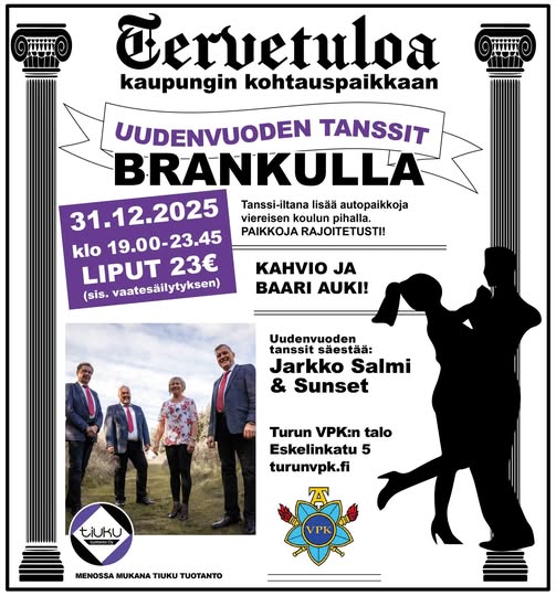 Ota kaveri, kumppani tai koko tanssiva porukka mukaan ja tule viettämään vuoden viimeinen ilta hyvän musiikin, iloisen tunnelman ja tanssin parissa.